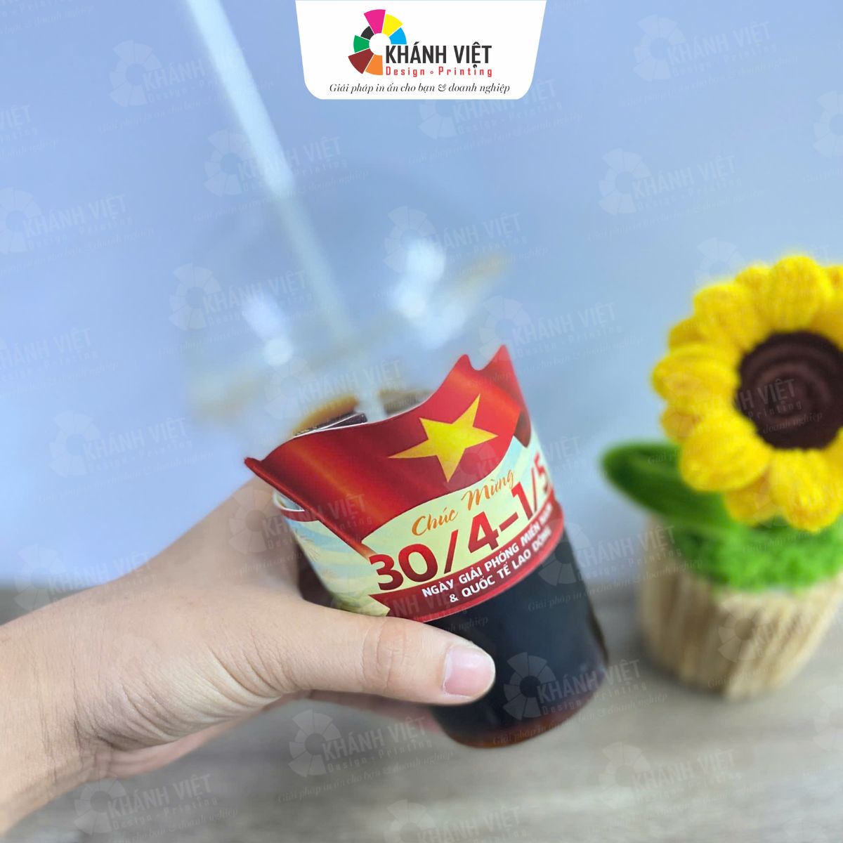 - Dễ bắt trend: Với sự kiện lớn của Đất Nước, các cửa hàng kinh doanh nước uống có thể in cover ly 30/4, sticker 30/4, sticker hình lá cờ hay các chiến sĩ để cùng hưởng ứng không khi vui mừng. Điều này thể hiện tinh thần dân tộc và dễ nhận được tình cảm của khách hàng hơn.