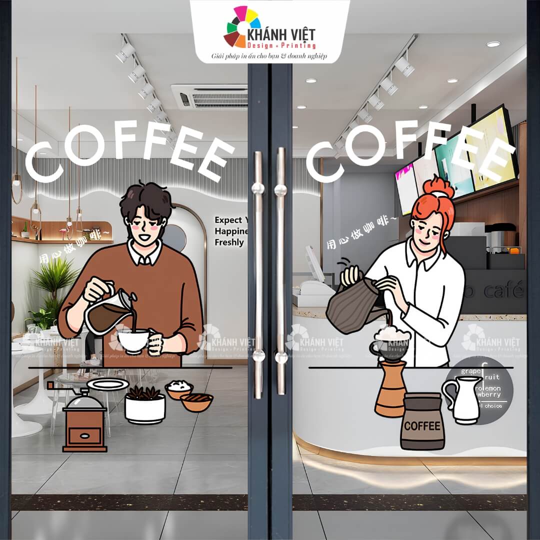 Được in với các gam màu đa dạng, giúp thể hiện logo thương hiệu, slogan hoặc thông điệp quảng cáo trên kính cửa hàng, showroom.