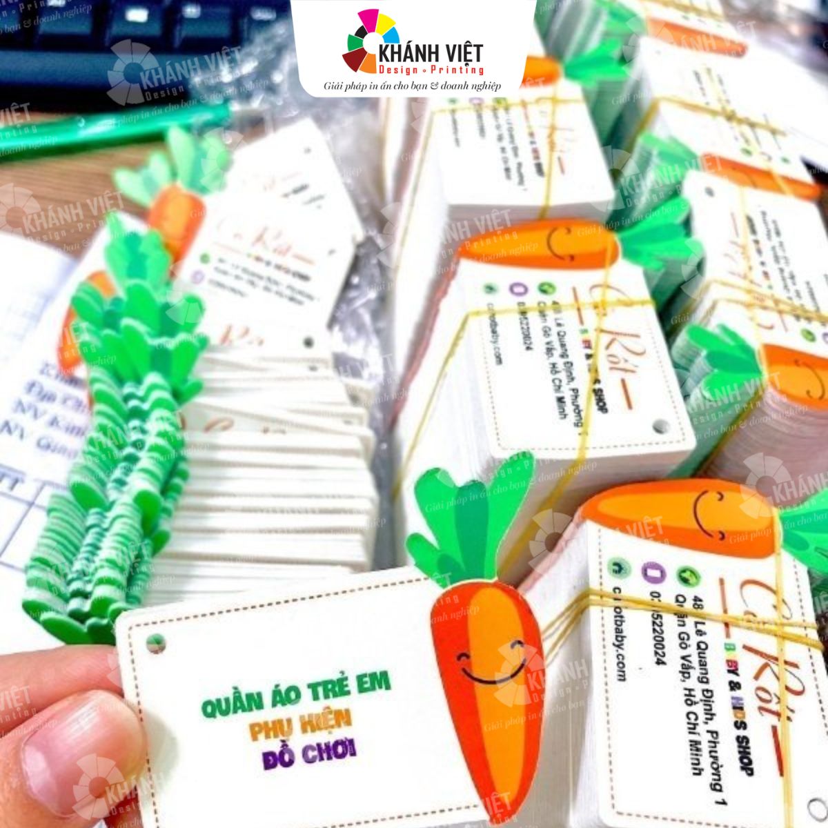 - Thiết kế miễn phí: Đội ngũ designer tại In Khánh Việt sẵn sàng hỗ trợ chỉnh sửa thẻ treo quần áo, trang phục, giày dép đến khi khách hàng hoàn toàn hài lòng.